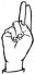 На ћирилици написано КОСТАДИН ГРАНДИЋ састоји се из 15 слова [?]. Исписано ћириличном једноручном азбуком за глувонеме:
